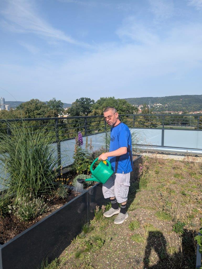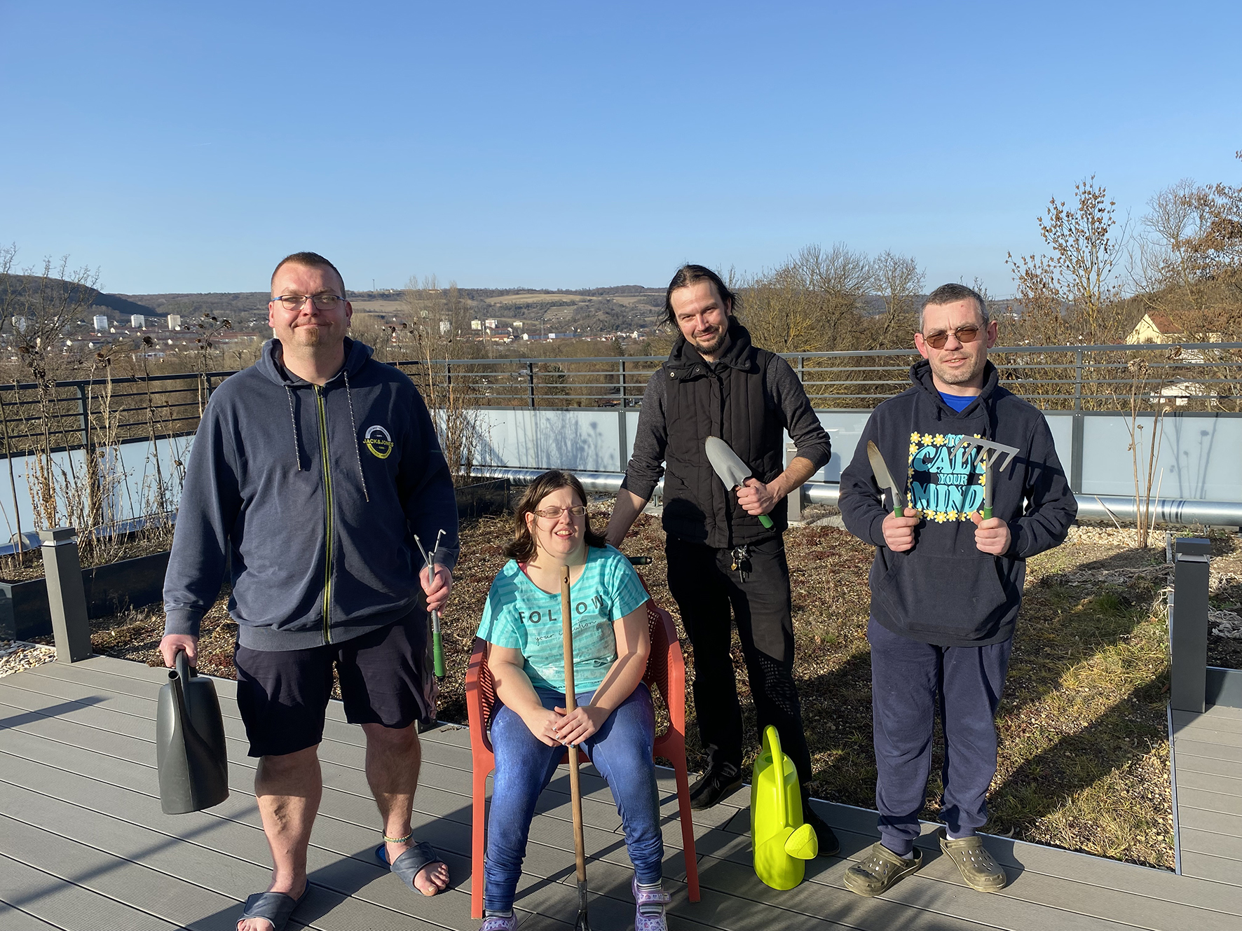 Ab März wird Freya Joana Graf im Rahmen ihres Studiums ehrenamtlich ein Projekt zur Bepflanzung des Dachgartens in den Erlenhöfen durchführen. Das Konzept wird sie in Leichter Sprache erstellen und gemeinsam mit interessierten Bewohnerinnen und Bewohnern aus den WGs plant sie, welche Pflanzen und Blumen auf dem Dachgarten Platz finden sollen. Teil des Konzepts wird ebenso die regelmäßige Pflege beinhalten. Dann gibt es einen für alle verständlichen Plan für das Dachgartenjahr, an dem sich die Bewohner*innen selbständig orientieren können. Bereits ab März werden dafür die Hochbeete vorbereitet und Samen in Anzuchtschälchen vorgezogen.